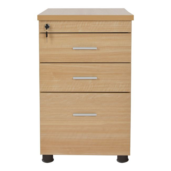 Συρταριέρα γραφείου για επαγγελματική χρήση, κατασκευασμένη από ανθεκτική μελαμίνη σε απόχρωση οξιάς με κλειδαριά για τα 2 πρώτα συρτάρια,